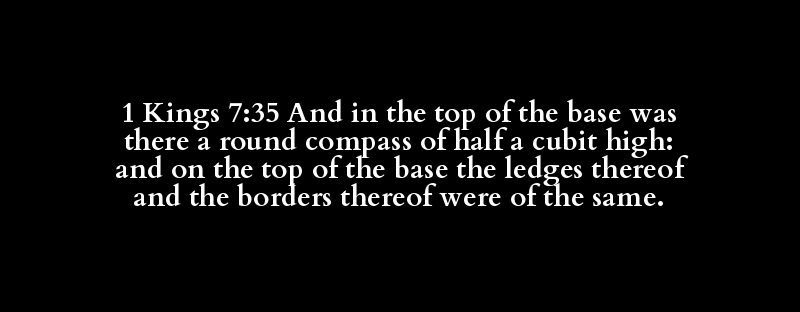1 Kings 7:35 And in the top of the base was there a round compass of half a cubit high: and on the top of the base the ledges thereof and the borders thereof were of the same.