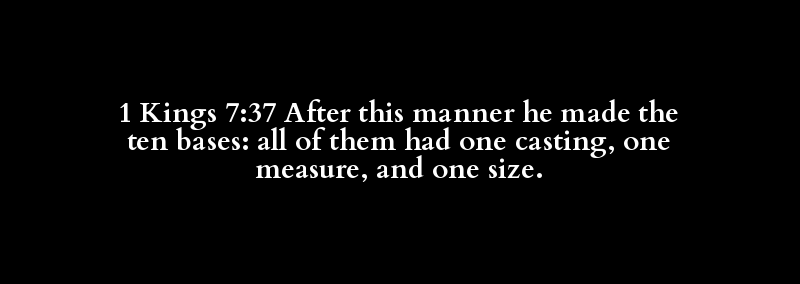 1 Kings 7:37 After this manner he made the ten bases: all of them had one casting, one measure, and one size.