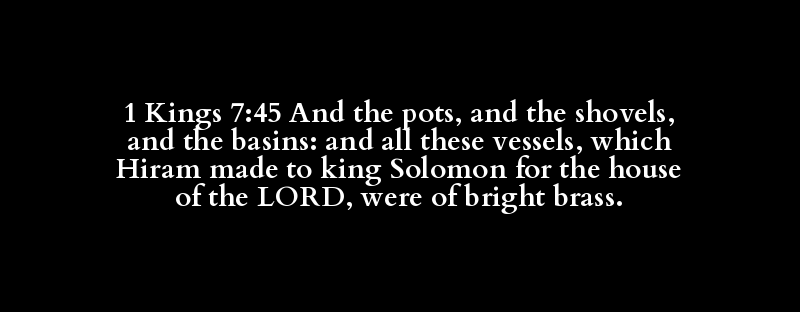 1 Kings 7:45 And the pots, and the shovels, and the basins: and all these vessels, which Hiram made to king Solomon for the house of the LORD, were of bright brass.