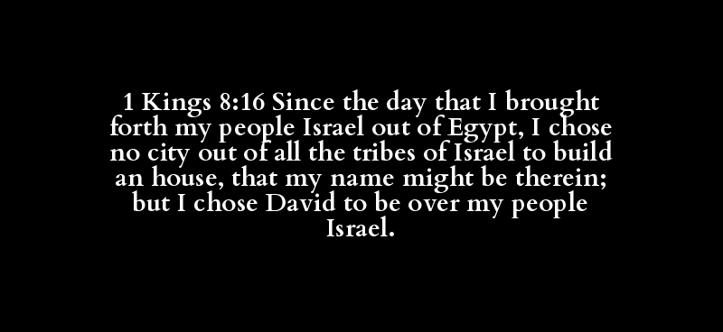 1 Kings 8:16 Since the day that I brought forth my people Israel out of Egypt, I chose no city out of all the tribes of Israel to build an house, that my name might be therein; but I chose David to be over my people Israel.