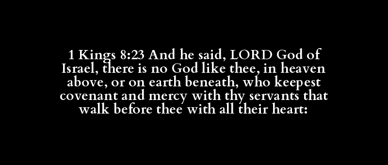 1 Kings 8:23 And he said, LORD God of Israel, there is no God like thee, in heaven above, or on earth beneath, who keepest covenant and mercy with thy servants that walk before thee with all their heart: