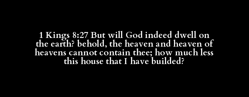1 Kings 8:27 But will God indeed dwell on the earth? behold, the heaven and heaven of heavens cannot contain thee; how much less this house that I have builded?