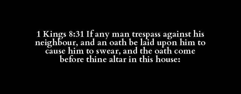 1 Kings 8:31 If any man trespass against his neighbour, and an oath be laid upon him to cause him to swear, and the oath come before thine altar in this house: