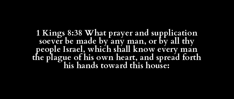 1 Kings 8:38 What prayer and supplication soever be made by any man, or by all thy people Israel, which shall know every man the plague of his own heart, and spread forth his hands toward this house: