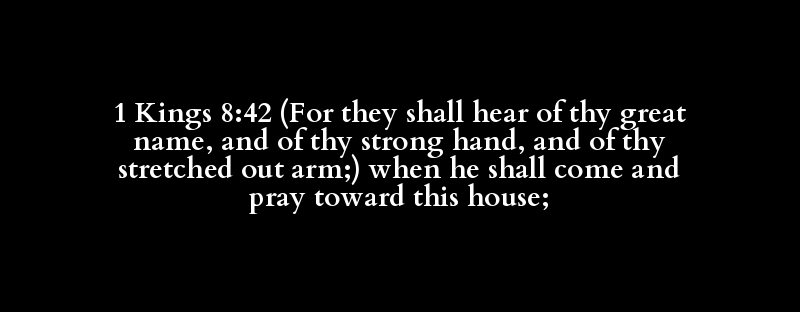 1 Kings 8:42 (For they shall hear of thy great name, and of thy strong hand, and of thy stretched out arm;) when he shall come and pray toward this house;