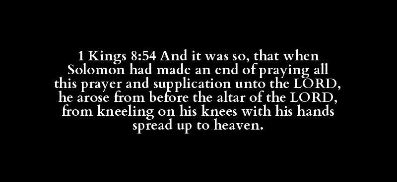 1 Kings 8:54 And it was so, that when Solomon had made an end of praying all this prayer and supplication unto the LORD, he arose from before the altar of the LORD, from kneeling on his knees with his hands spread up to heaven.