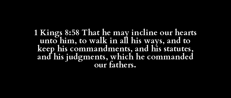 1 Kings 8:58 That he may incline our hearts unto him, to walk in all his ways, and to keep his commandments, and his statutes, and his judgments, which he commanded our fathers.