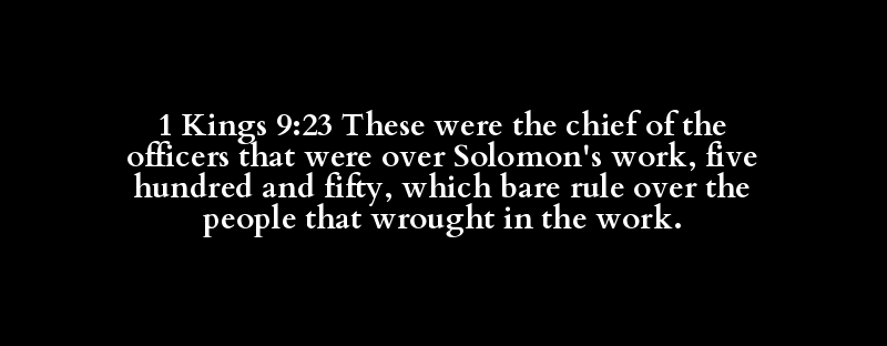 1 Kings 9:23 These were the chief of the officers that were over Solomon's work, five hundred and fifty, which bare rule over the people that wrought in the work.