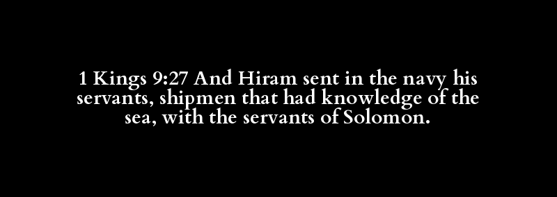 1 Kings 9:27 And Hiram sent in the navy his servants, shipmen that had knowledge of the sea, with the servants of Solomon.