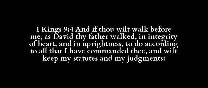 1 Kings 9:4 And if thou wilt walk before me, as David thy father walked, in integrity of heart, and in uprightness, to do according to all that I have commanded thee, and wilt keep my statutes and my judgments: