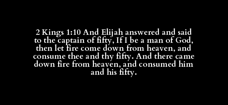 2 Kings 1:10 And Elijah answered and said to the captain of fifty, If I be a man of God, then let fire come down from heaven, and consume thee and thy fifty. And there came down fire from heaven, and consumed him and his fifty.