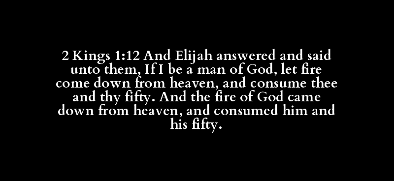 2 Kings 1:12 And Elijah answered and said unto them, If I be a man of God, let fire come down from heaven, and consume thee and thy fifty. And the fire of God came down from heaven, and consumed him and his fifty.