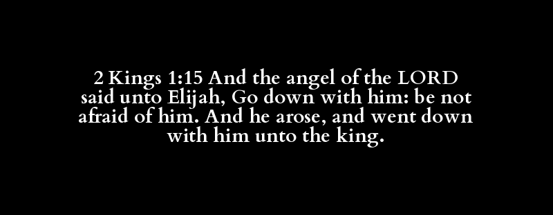 2 Kings 1:15 And the angel of the LORD said unto Elijah, Go down with him: be not afraid of him. And he arose, and went down with him unto the king.