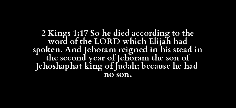 2 Kings 1:17 So he died according to the word of the LORD which Elijah had spoken. And Jehoram reigned in his stead in the second year of Jehoram the son of Jehoshaphat king of Judah; because he had no son.