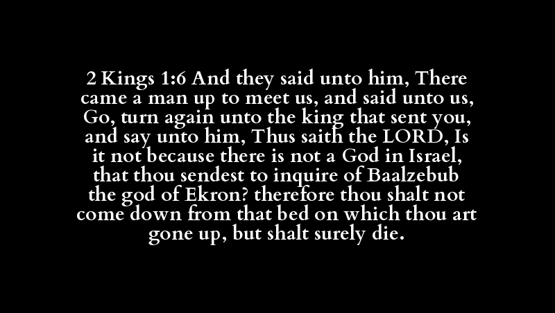 2 Kings 1:6 And they said unto him, There came a man up to meet us, and said unto us, Go, turn again unto the king that sent you, and say unto him, Thus saith the LORD, Is it not because there is not a God in Israel, that thou sendest to inquire of Baalzebub the god of Ekron? therefore thou shalt not come down from that bed on which thou art gone up, but shalt surely die.