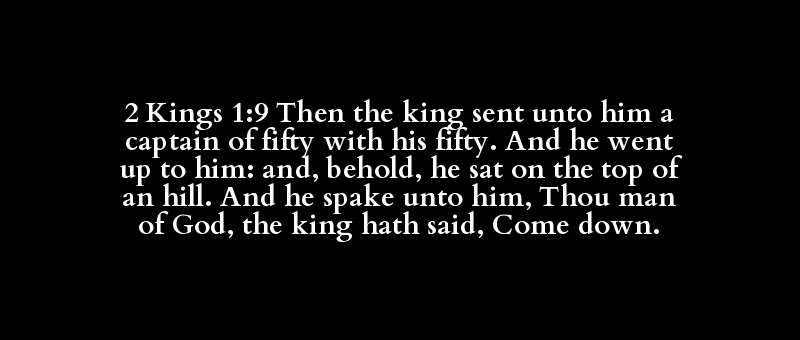 2 Kings 1:9 Then the king sent unto him a captain of fifty with his fifty. And he went up to him: and, behold, he sat on the top of an hill. And he spake unto him, Thou man of God, the king hath said, Come down.