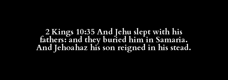 2 Kings 10:35 And Jehu slept with his fathers: and they buried him in Samaria. And Jehoahaz his son reigned in his stead.