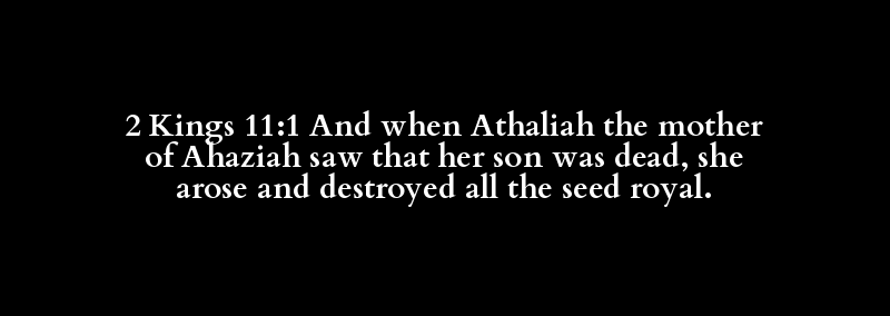 2 Kings 11:1 And when Athaliah the mother of Ahaziah saw that her son was dead, she arose and destroyed all the seed royal.