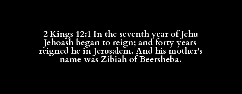 2 Kings 12:1 In the seventh year of Jehu Jehoash began to reign; and forty years reigned he in Jerusalem. And his mother's name was Zibiah of Beersheba.