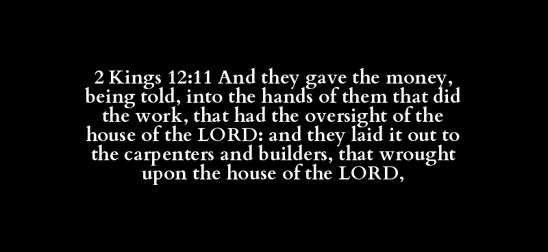 2 Kings 12:11 And they gave the money, being told, into the hands of them that did the work, that had the oversight of the house of the LORD: and they laid it out to the carpenters and builders, that wrought upon the house of the LORD,