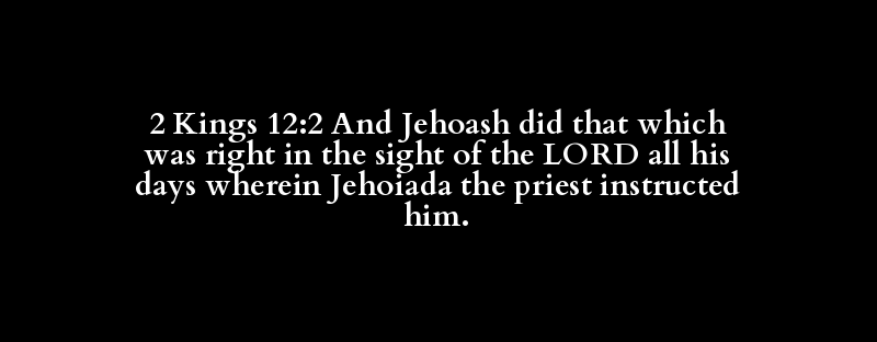2 Kings 12:2 And Jehoash did that which was right in the sight of the LORD all his days wherein Jehoiada the priest instructed him.
