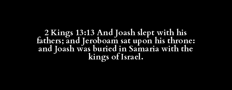 2 Kings 13:13 And Joash slept with his fathers; and Jeroboam sat upon his throne: and Joash was buried in Samaria with the kings of Israel.