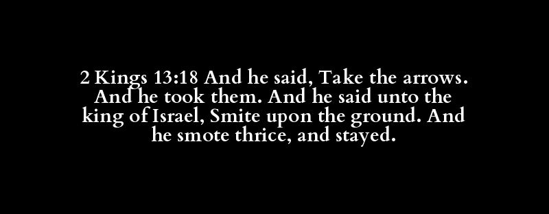 2 Kings 13:18 And he said, Take the arrows. And he took them. And he said unto the king of Israel, Smite upon the ground. And he smote thrice, and stayed.