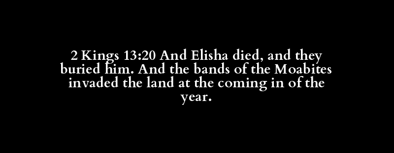 2 Kings 13:20 And Elisha died, and they buried him. And the bands of the Moabites invaded the land at the coming in of the year.