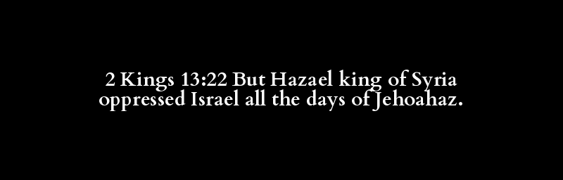 2 Kings 13:22 But Hazael king of Syria oppressed Israel all the days of Jehoahaz.