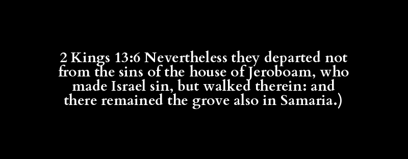 2 Kings 13:6 Nevertheless they departed not from the sins of the house of Jeroboam, who made Israel sin, but walked therein: and there remained the grove also in Samaria.)