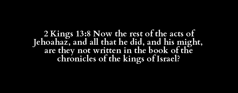 2 Kings 13:8 Now the rest of the acts of Jehoahaz, and all that he did, and his might, are they not written in the book of the chronicles of the kings of Israel?