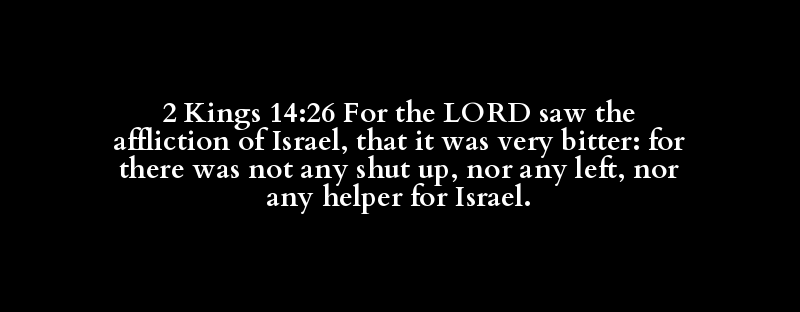 2 Kings 14:26 For the LORD saw the affliction of Israel, that it was very bitter: for there was not any shut up, nor any left, nor any helper for Israel.