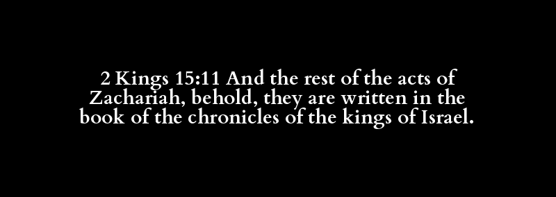 2 Kings 15:11 And the rest of the acts of Zachariah, behold, they are written in the book of the chronicles of the kings of Israel.