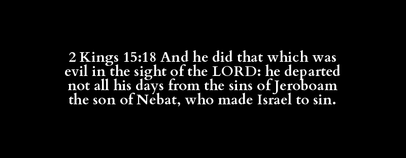 2 Kings 15:18 And he did that which was evil in the sight of the LORD: he departed not all his days from the sins of Jeroboam the son of Nebat, who made Israel to sin.