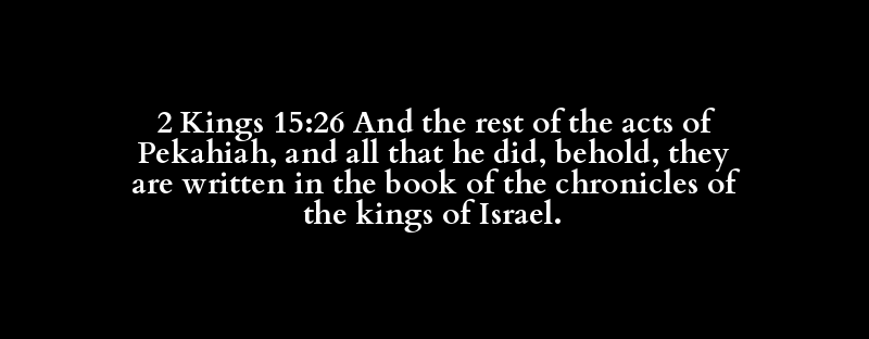 2 Kings 15:26 And the rest of the acts of Pekahiah, and all that he did, behold, they are written in the book of the chronicles of the kings of Israel.