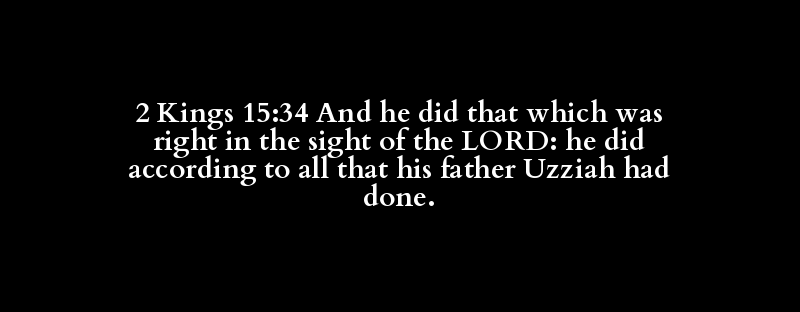 2 Kings 15:34 And he did that which was right in the sight of the LORD: he did according to all that his father Uzziah had done.