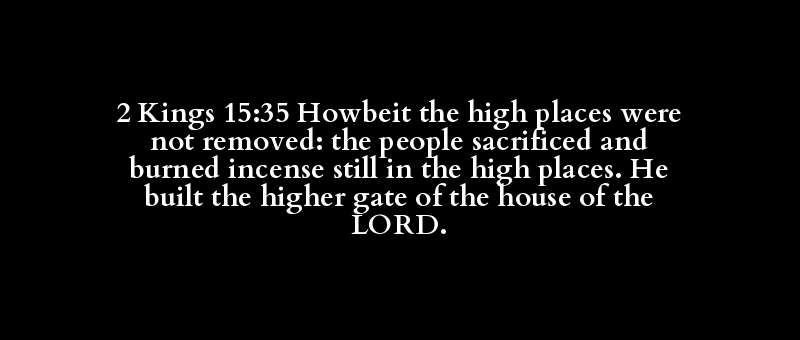 2 Kings 15:35 Howbeit the high places were not removed: the people sacrificed and burned incense still in the high places. He built the higher gate of the house of the LORD.