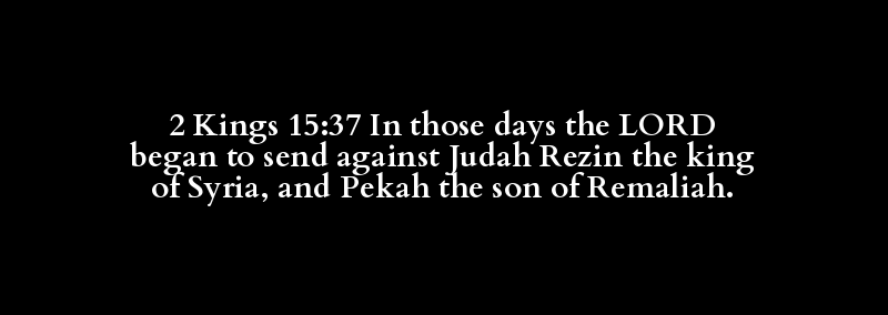 2 Kings 15:37 In those days the LORD began to send against Judah Rezin the king of Syria, and Pekah the son of Remaliah.