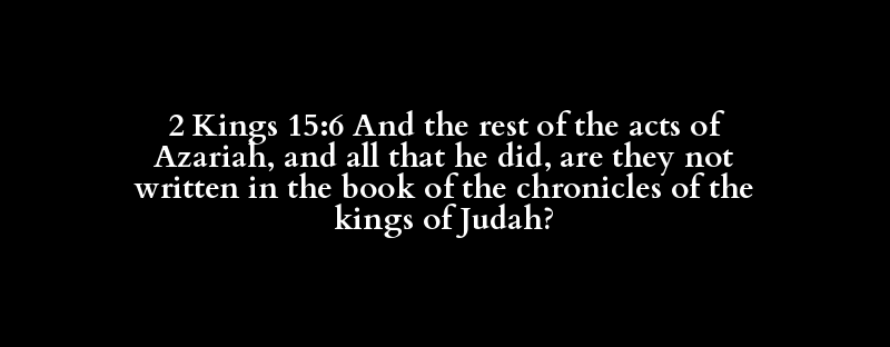 2 Kings 15:6 And the rest of the acts of Azariah, and all that he did, are they not written in the book of the chronicles of the kings of Judah?
