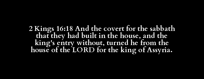 2 Kings 16:18 And the covert for the sabbath that they had built in the house, and the king's entry without, turned he from the house of the LORD for the king of Assyria.