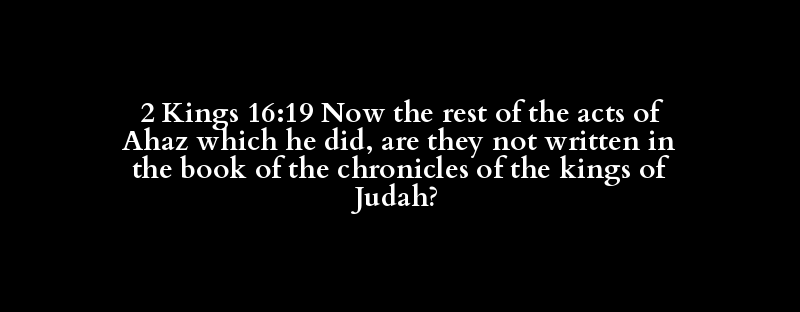 2 Kings 16:19 Now the rest of the acts of Ahaz which he did, are they not written in the book of the chronicles of the kings of Judah?
