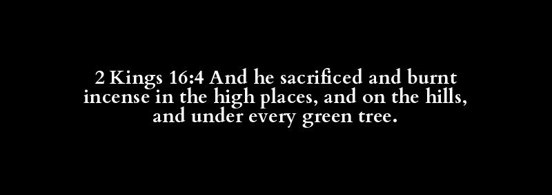 2 Kings 16:4 And he sacrificed and burnt incense in the high places, and on the hills, and under every green tree.