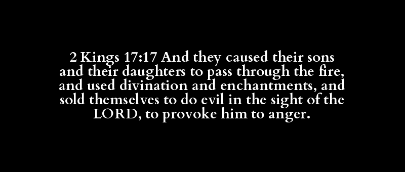 2 Kings 17:17 And they caused their sons and their daughters to pass through the fire, and used divination and enchantments, and sold themselves to do evil in the sight of the LORD, to provoke him to anger.