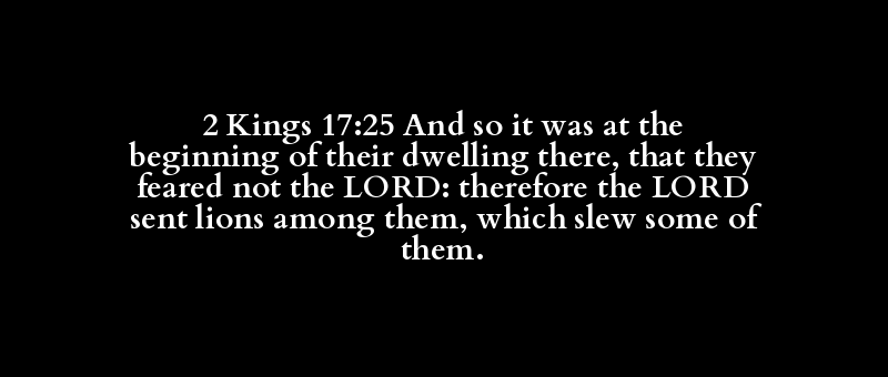 2 Kings 17:25 And so it was at the beginning of their dwelling there, that they feared not the LORD: therefore the LORD sent lions among them, which slew some of them.