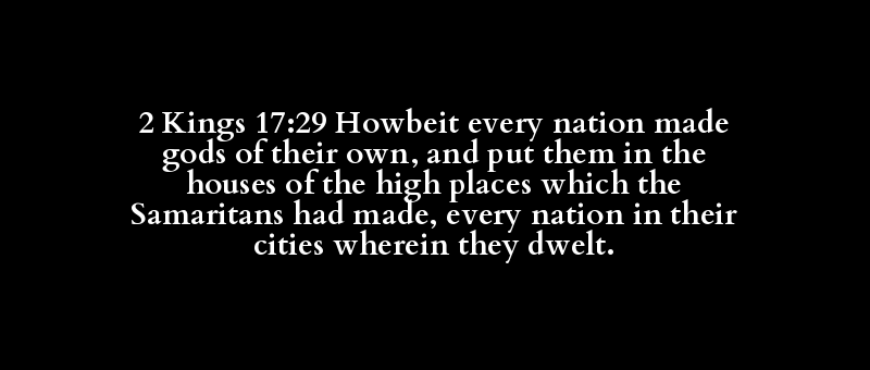 2 Kings 17:29 Howbeit every nation made gods of their own, and put them in the houses of the high places which the Samaritans had made, every nation in their cities wherein they dwelt.