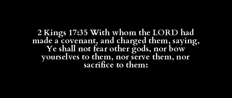 2 Kings 17:35 With whom the LORD had made a covenant, and charged them, saying, Ye shall not fear other gods, nor bow yourselves to them, nor serve them, nor sacrifice to them: