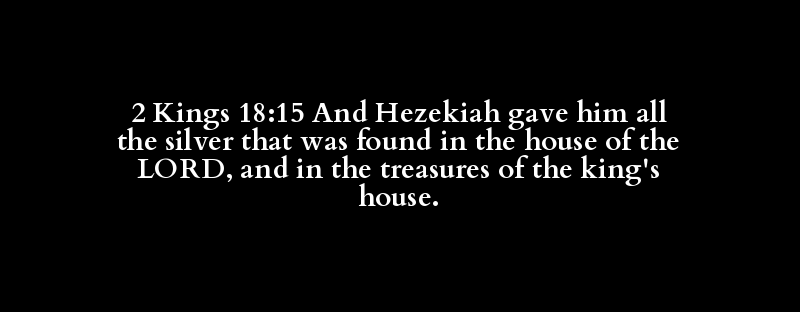 2 Kings 18:15 And Hezekiah gave him all the silver that was found in the house of the LORD, and in the treasures of the king's house.