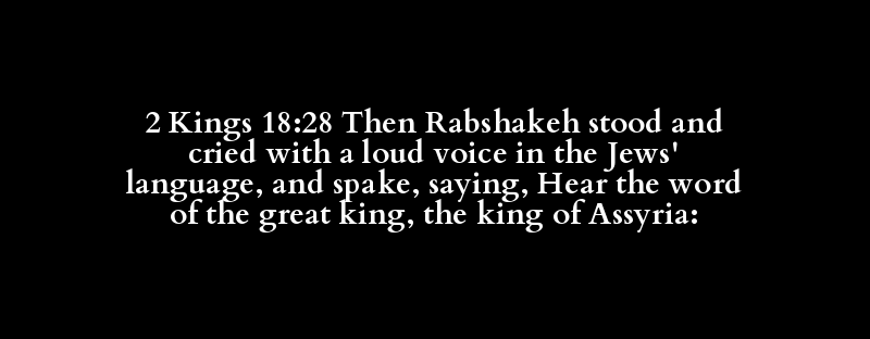 2 Kings 18:28 Then Rabshakeh stood and cried with a loud voice in the Jews' language, and spake, saying, Hear the word of the great king, the king of Assyria: