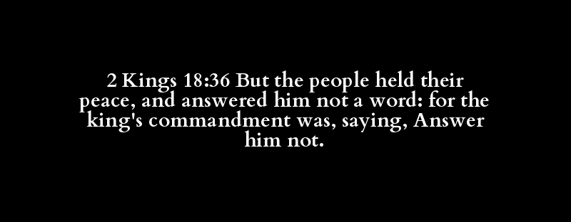2 Kings 18:36 But the people held their peace, and answered him not a word: for the king's commandment was, saying, Answer him not.