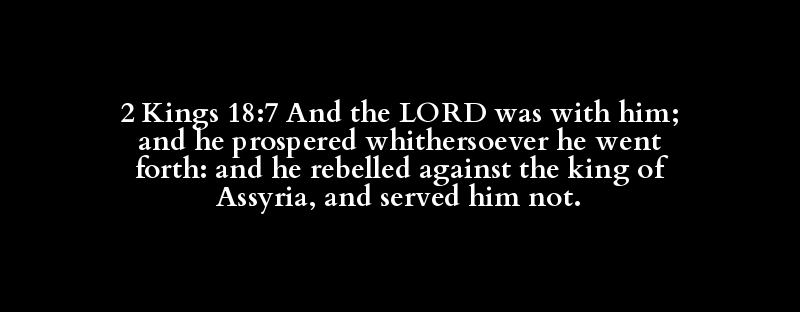 2 Kings 18:7 And the LORD was with him; and he prospered whithersoever he went forth: and he rebelled against the king of Assyria, and served him not.
